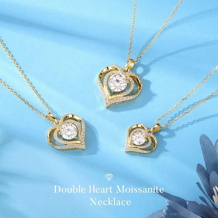 - GIFTING: Double Heart Moissanite Necklace is beautifully wrapped, with velvet jewelry box, presentation box, gifts box, silver polishing cloth. Suitable on Birthday, Anniversary, Christmas, Mother's Day, Valentine's Day and so on as a perfect gift to your wife, mom, girlfriend, sister, friends