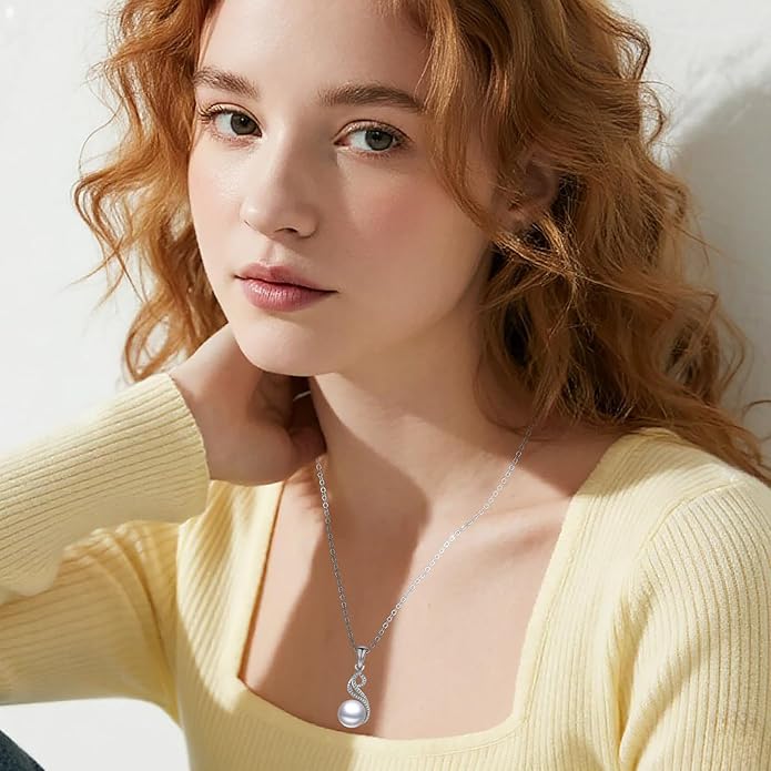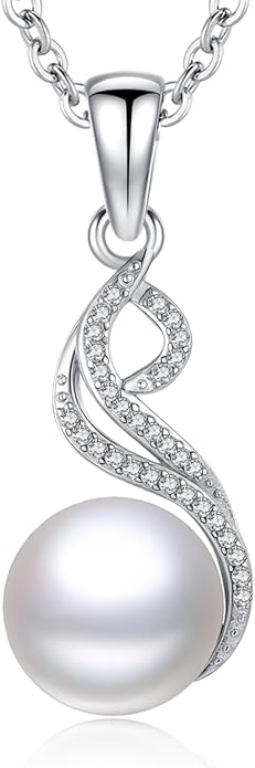 Pearl Pendant Necklace for Women,925 Sterling Silver Pendant Jewelry,Anniversary Christmas Birthday Valentines Gifts for Wife, Mom, Dauhter, Girlfriend,Her
