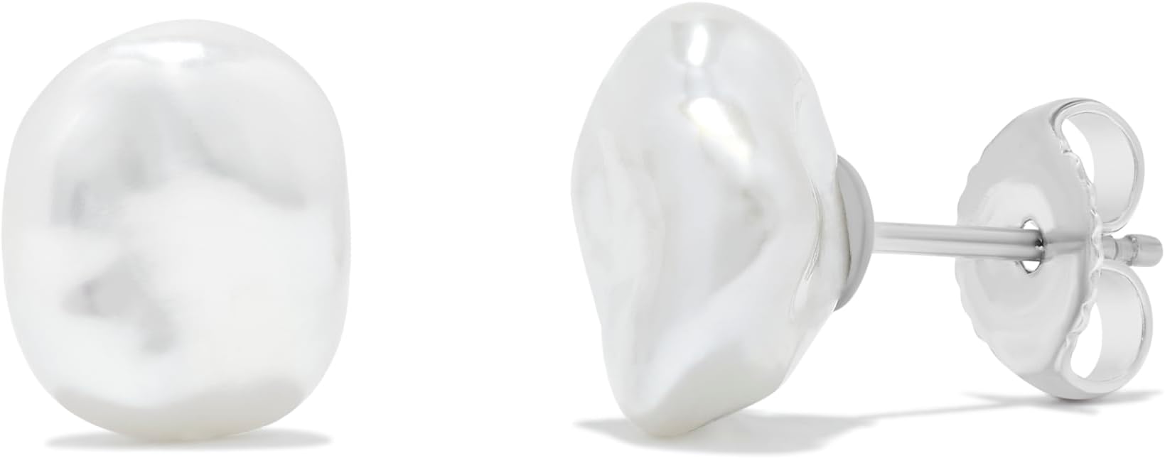 - THE PURITY OF PEARLS: Add a feminine touch to any outfit with these stunning Keshi Cultured Pearl Earrings featuring a perfectly matched pair of Lustrous genuine Freshwater Keshi Pearls in a Bright White color. These earrings are set in invisible settings of Solid Sterling Silver. The back of the gorgeous Radiant Pearl Stud Earring set is comfortable and secure, ensuring these Baroque-shaped Pearl stay put.