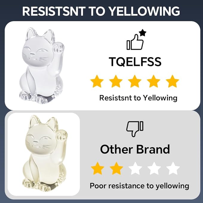 - Upgrade Formula & Cured Full : Improved for reduce sticky and tacky issue,extremely clear,low shrinkage, and yellowing resistance. Curing in minutes with 36W UV lamp. Please note that The darker color added, the longer UV resin curing