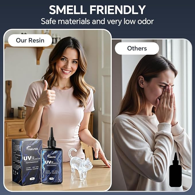 - Safe and Reliable:Our UV resin is made of safe and reliable materials with self-leveling and self-degassing properties. It is completely odorless after curing, crystal clear, scratch-resistant, and non-sticky