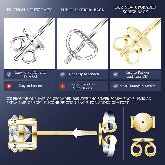 - Premium 925 Sterling Silver. These moissanite earrings are crafted in solid 925 sterling silver with an 18K white-gold finish; nickel- and lead-free for comfortable wear on sensitive ears. Sturdy posts and secure backs stay put from day to night.