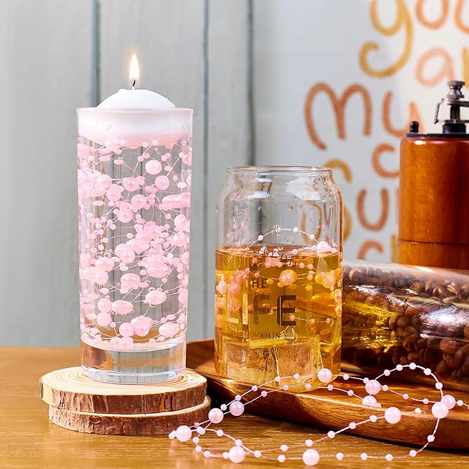 - Party Supplies: Pink floating pearls are for countless DIY projects and centerpiece table décor. Suitable as water beads for vases, or holiday centerpiece accents. Soft strings adjust to any vase height—add more pearl strings for tall vases to achieve a fuller look