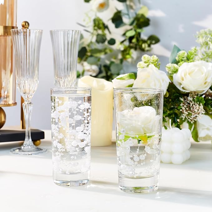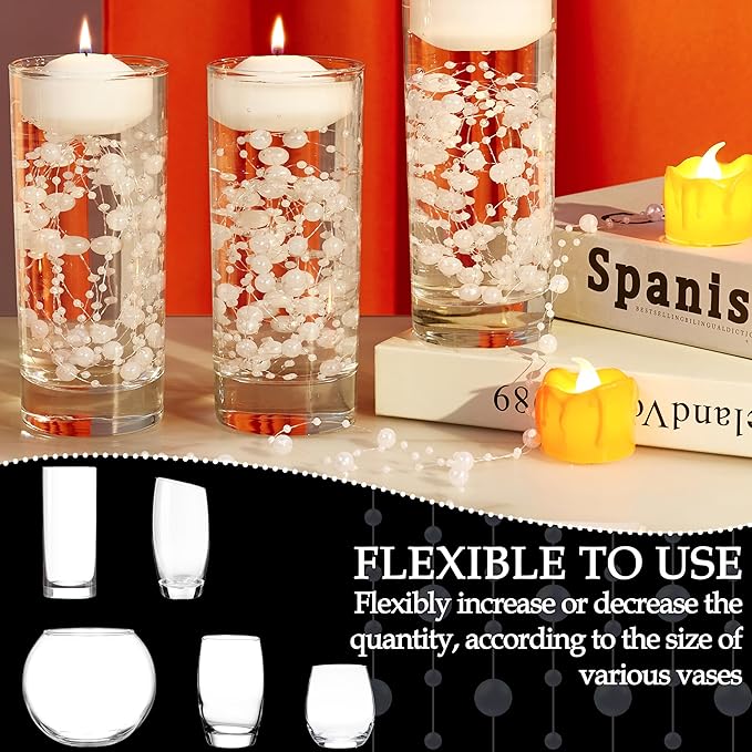 - Easy-to-Use Vase Filler & Pearl Garland: : No tools required—just add water and place pearl strings inside vases, bowls, or tall cylinders. These floating pearls for vases double as pearl garlands, photo props, and shop displays, making them versatile for both event planners and home stylists