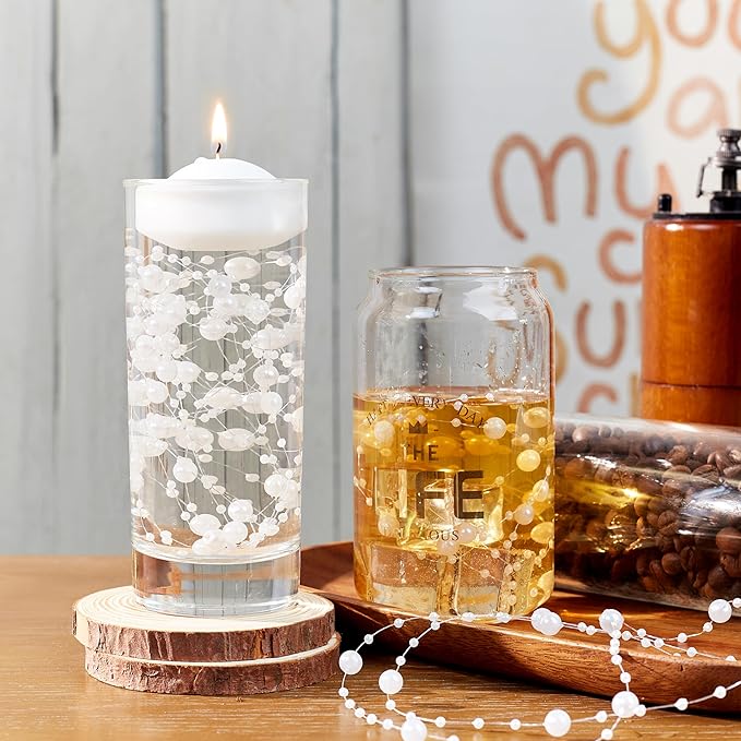 - Pearls for Floating Candles & Vase Filler: Designed for floating candles, these pearls stay suspended in water for a striking visual effect. Ideal as pearls for floating candles or floating pearls for vases, they elevate candle holders, glass bowls, and vases into glowing centerpieces for weddings, Valentine’s Day, Christmas, and New Year celebrations