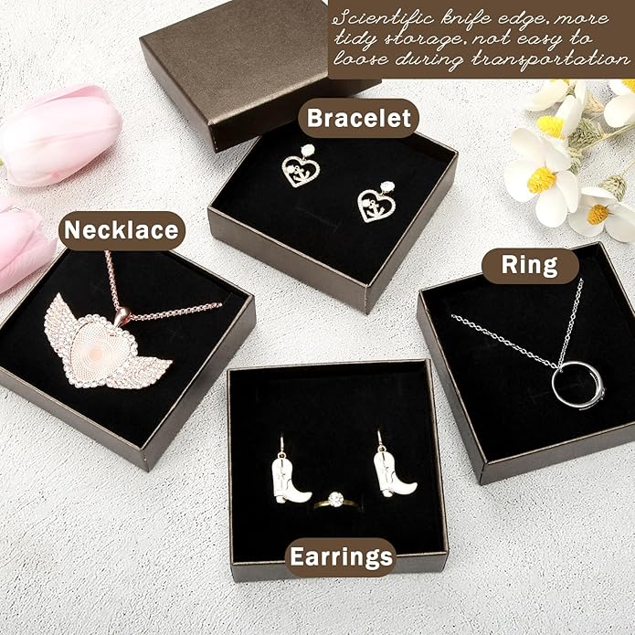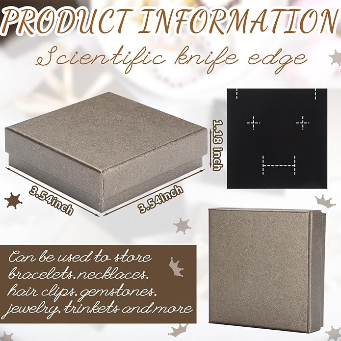 - Suitable Size: compact and convenient design each kraft box has a compact size of about 3.5 x 3.5 x 1.2 inches/ 9 x 9 x 3 cm, making them suitable for storing various types of jewelry pieces; The size is ideal for earrings, bracelets, necklaces, rings, small beads, crystals, coins, and other small collectibles; Additionally, the boxes come with a 0.39 inch thick sponge pad inside, providing additional protection to your delicate jewelry items
