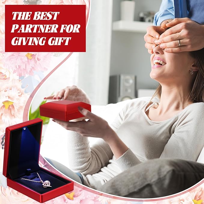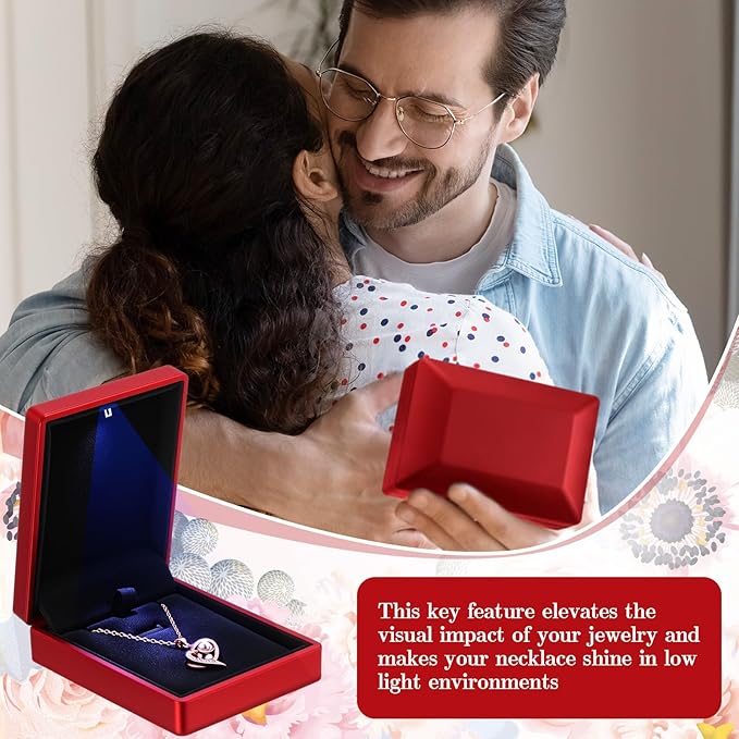 - Innovative LED Lights Feature: a feature in these necklace gift boxes for jewelry is the built in white LED light that automatically turns on upon opening the box; This key feature elevates the visual impact of your jewelry and makes your necklace shine in an eye catching display, especially in low light environments