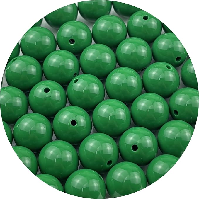 YUEXIGO 40pcs Acrylic Round Beads for Crafts 16mm Resin Candy Color Spacer Beads with Hole for Jewelry Making Sewing Crafts Decoration Necklaces Bracelets Earrings Supplies(Dark Green)