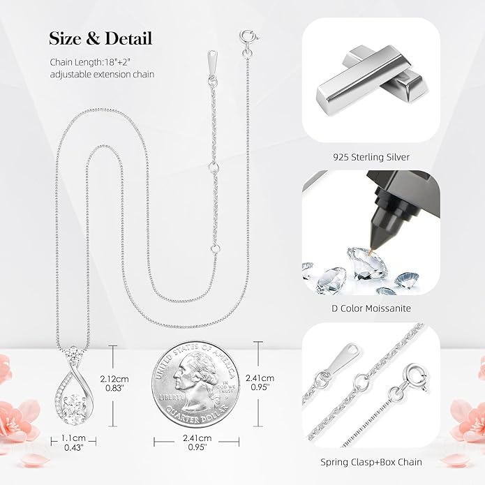 1.5CT Moissanite Infinity Pendant Necklace in Gift Box|Anniversary Wedding Gifts for Women Wife Her|S925 Sterling Silver 18K White Gold/Gold Filled|Jewelry for Birthday Christmas Valentines Day