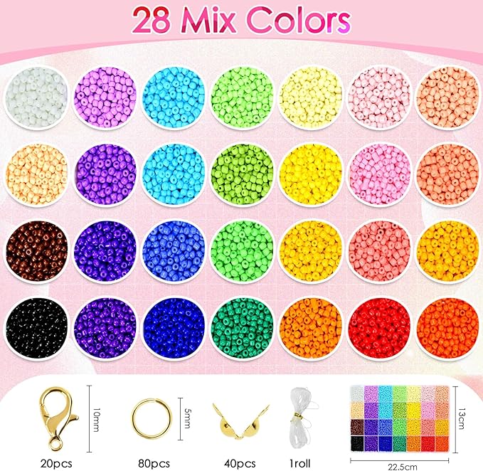 - Wide Usage: The colorful seed beads kit, suitable for various jewelry and handicrafts making such as bracelets, necklaces, earrings, rings, key chains, waist chains, eyeglass chains, beaded curtains, etc.