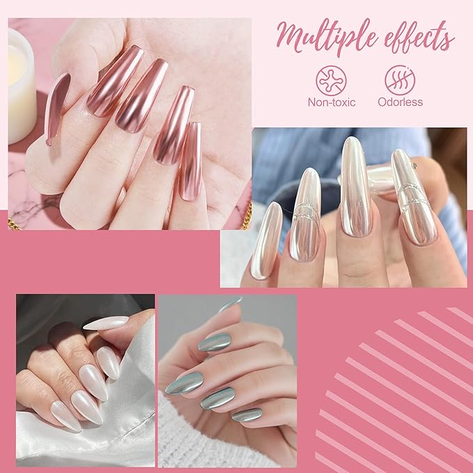 - 【PACKAGE CONTENTS】:1 PCS silver moonlight chrome nail pearl pigment powders. It needs to be used with gel nail polish and no wipe top coat. They can make many different design for your gel nail polish. It gives different color base a pearly shine for your nails