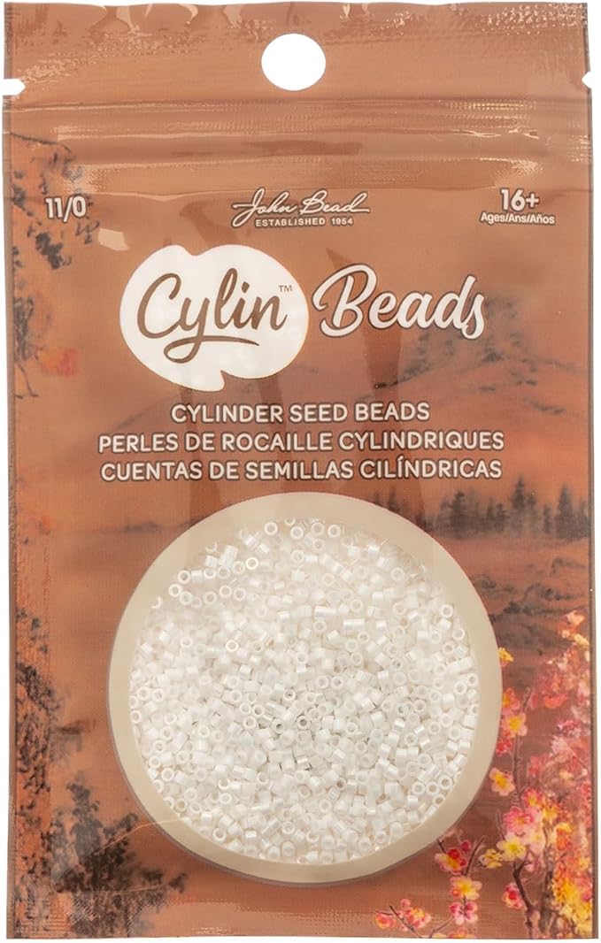 John Bead 25g Cylin Beads White Pearl AB 11/0 Glass Cylindrical Seed Beads for Jewelry Bracelets Necklaces Earrings Making Embroidery Home Decor