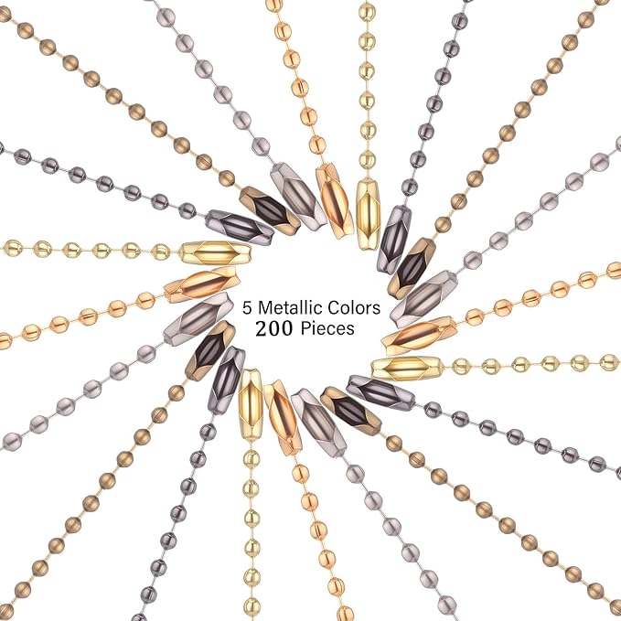 Hicarer 200 Pack Colored Bead Keychain Metal Hanging Chains 4.72 Inch Keychains Necklace Connector for Hanging Ornament Jewelry Tag (Metallic Color)