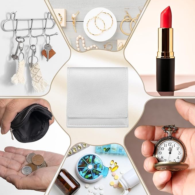 - Color: Silver; Total Size: 8 x 8 x cm/3.1 x 3.1 inches; Material: PU Leather; Quantity: 20PCS. These jewelry bags come in 11 colors. The appearance is simple and elegant, and the quantity is sufficient to meet your needs for storing jewelry and other small items, and you can also share it with friends.