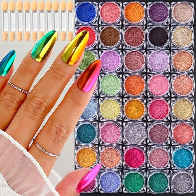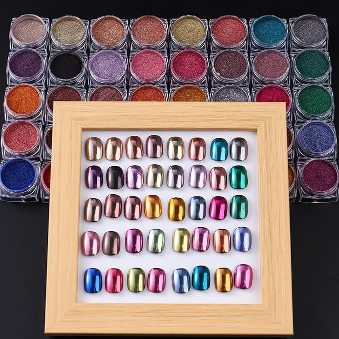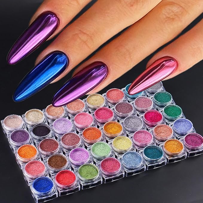 - Full 40-Color Collection – This Metallic Mirror Chrome Nail Powder Set offers a spectrum of vivid and neutral tones for endless nail art creativity.