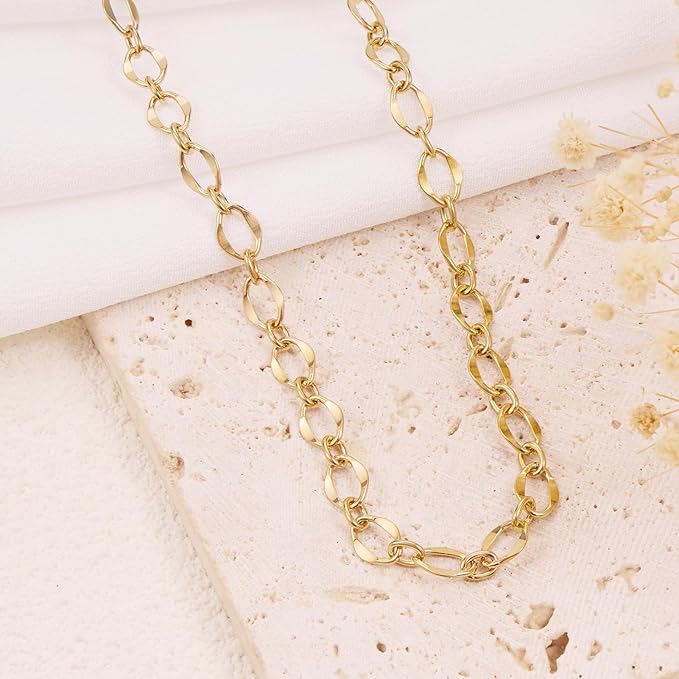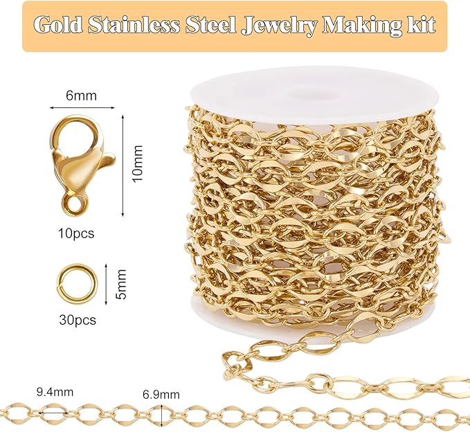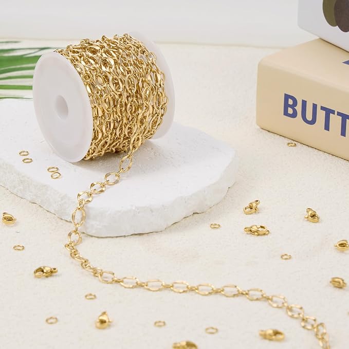 GTVOODX 13 Feet 18K Gold Plated Jewelry Making Chain Kit Stainless Steel Lips Dapped Chain Spool Bulk for DIY Jewelry Making Necklace Bracelet