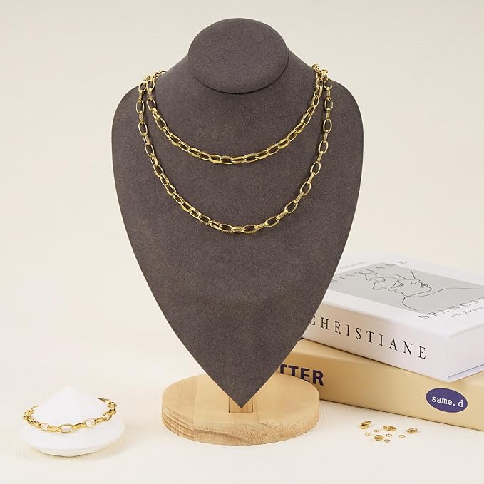 GTVOODX 13 Feet 18K Gold PVD Plated Paperclip Chain Roll, Stainless Steel Textured Oval Link Chain Bulk for DIY Jewelry Making with Lobster Clasps and Jump Rings