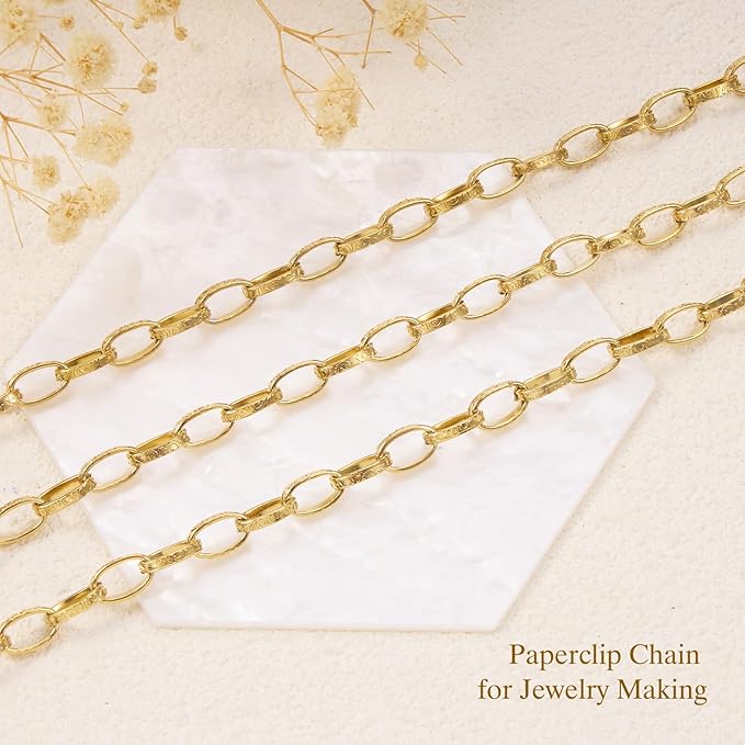 - Package Includes: You will receive 13 feet (4 meters) gold filled textured glittery unfinished oval paper clip chain bulk, 10pcs lobster clasps and 30pcs jump rings, they can meet your various diy craft needs.