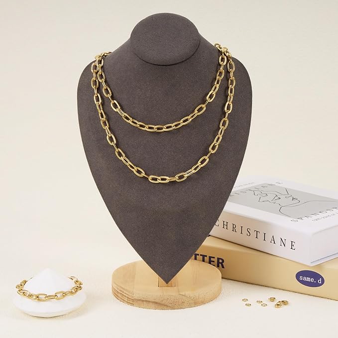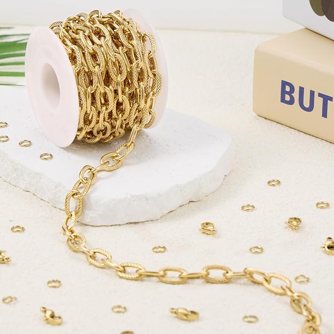 - Package Includes: You will receive 9.8 feet (3 meters) thick PVD gold plated textured oval cable chain bulk, 10pcs lobster clasps and 30pcs jump rings, they can meet your various diy craft needs.