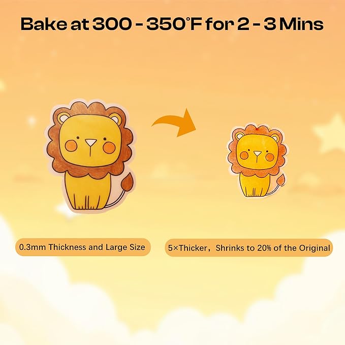 - Premium Shrink Film: This 0.3 mm thick shrinking paper (7.9 x 5.7 inches) features a frosted side for easy, smudge-resistant coloring and a glossy side for a brilliant shine. After shrinking, it reduces to just 20% of its original size while becoming 5 times thicker