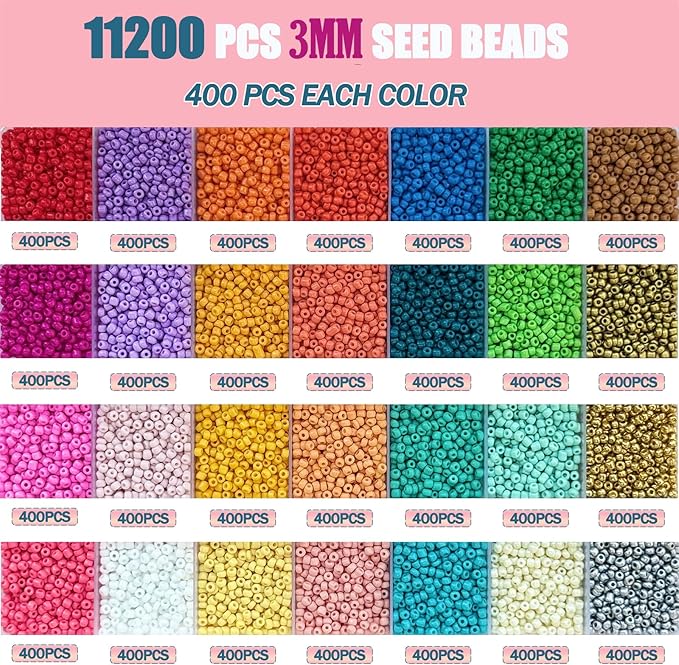 LLchunyun 3mm Glass Seed Beads for Bracelet,11200Pcs Small Beads for Jewelry Making 28 Colors Friendship Bracelet Making Kit for Adults DIY Crafts