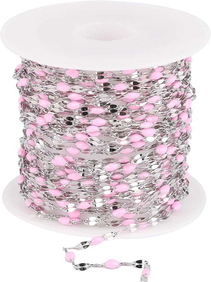 16.5FT Pink Enamel Dapped Chain Roll, 2MM Stainless Steel Enalem Lip Link Chains Spool Bulk for DIY Jewelry Making