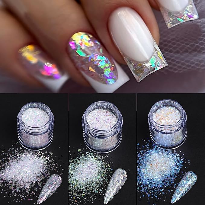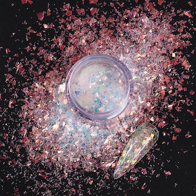 - Holographic Glitter Flake: Our chameleon holographic nail foil flake has been specially treated to have a stronger gloss and can reflect brilliant colors like the aurora. Different effects can be obtained by applying it on different color bases.