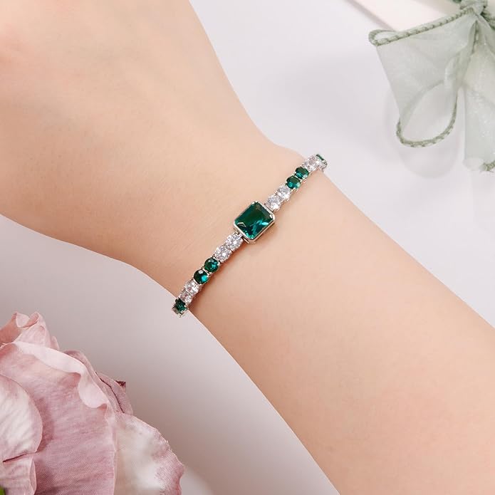 - May Birthstone Bracelet: Emerald, the May birthstone, stands for renewal, growth, and harmony. Its lush green color symbolizes hope and abundance—making it an inspiring tennis bracelet for women to celebrate love and prosperity.