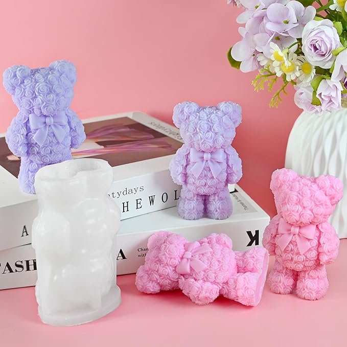 - VERSATILE MATERIAL COMPATIBILITY: The flexible rose bear mold works perfectly with multiple materials including candle wax, soap, clay, chocolate, cake batter, and resin, making it ideal for diverse crafting projects