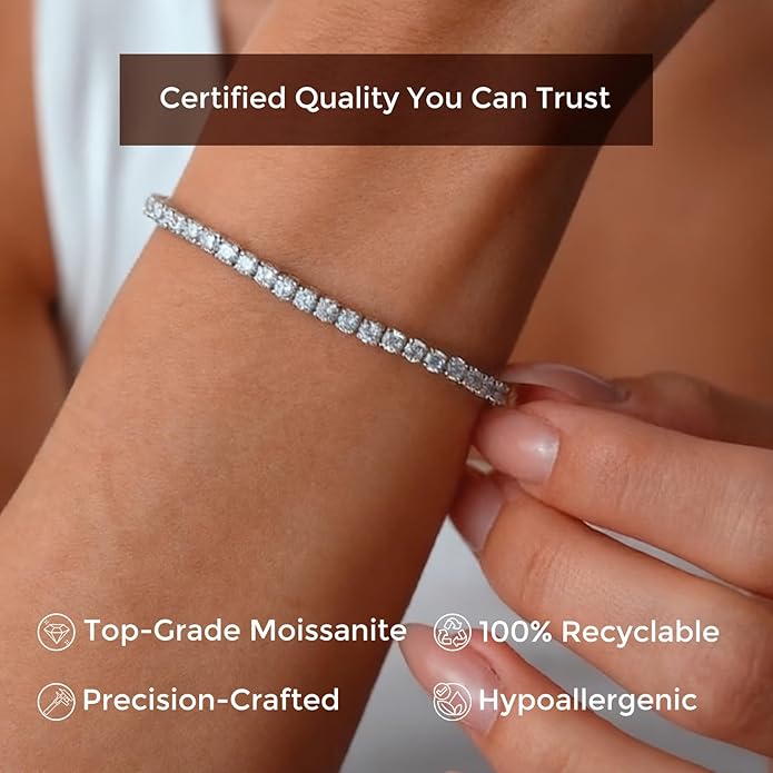 - 【 Fashionable Moissanite Jewelry Gift 】 Our moissanite bracelet comes with a beautiful packaging box. The silver tennis bracelet is suitable for women to wear alone or layered, and can be combined with different clothing styles. Suitable for daily wear, parties or weddings. It is an ideal gift for Mother's Day, birthdays, Thanksgiving Day, Christmas and anniversaries, to be given to yourself, your lover, your sister or your mother.