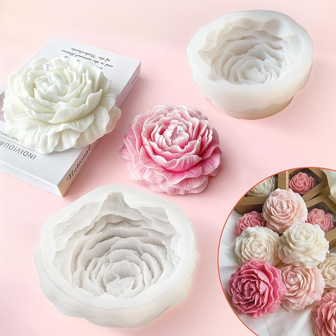 2 Pack Peony Candle Molds Set–Reusable 3D Flower Silicone Molds for Candle Making, Resin Art, Soap & Chocolate Crafts, DIY Floral Decor Supplies
