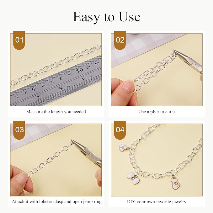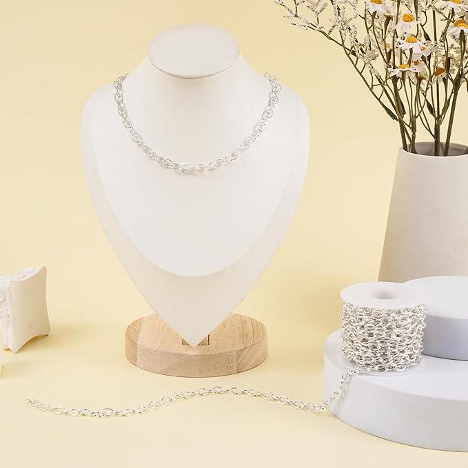 - Applications: The silver chain for jewelry making is suitable for making all kinds of unique necklaces, bracelets, waist chains, anklets, body chains, hat chains, eyeglasses chains, bag chains, decorative chains and so on. The chain roll is the best choice for family, friends, coworkers, DIY enthusiast as a birthday gift, Christmas gift, anniversary gift and so on.