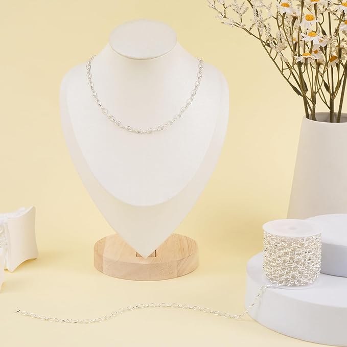 Jabogrii 16.4 Feet Silver Rolo Chain for Jewelry Making Metal Chain Bulk with Lobster Clasps and Jump Rings