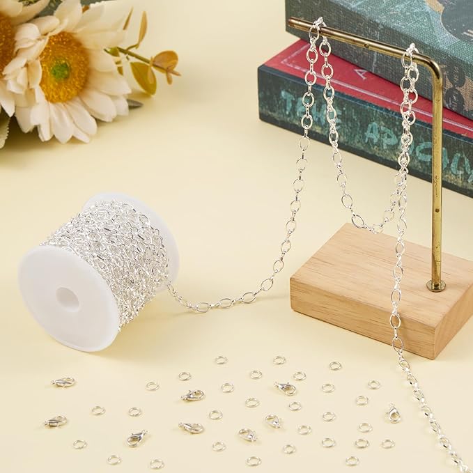 - Jewelry Chain Set: The package includes 1 roll of 5 meters silver chain, 10 lobster clasps and 30 open jump rings. The quantity is sufficient to meet your needs for making all kinds of jewelry.