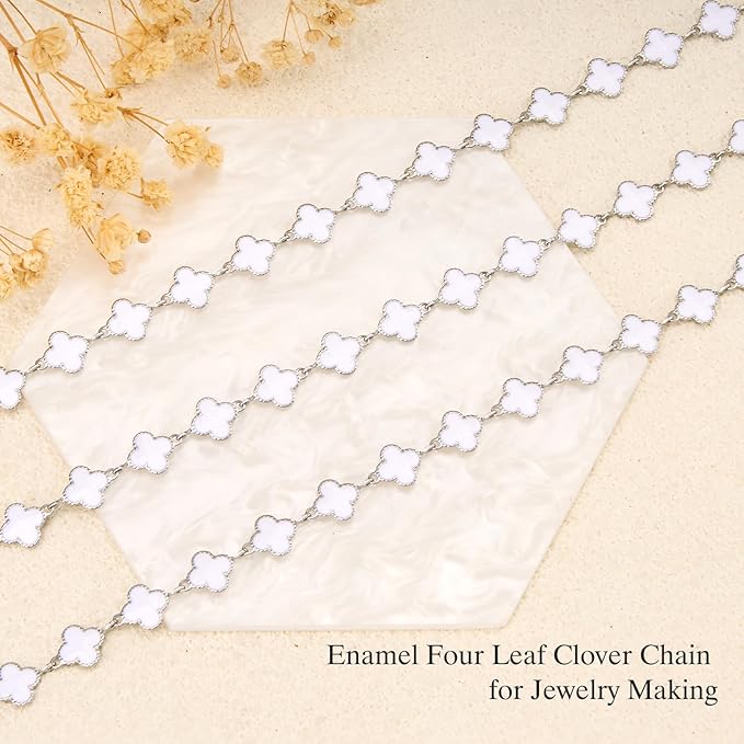 - Stainless Steel Enamel Chain: Permanent jewelry chain supplies are made of high-quality 304 stainless steel, durable and bright, not easy to rust, features white enamel Clover. It’s lead-free, nickel-free, hypoallergenic, and safe for sensitive skin—perfect for permanent jewelry.