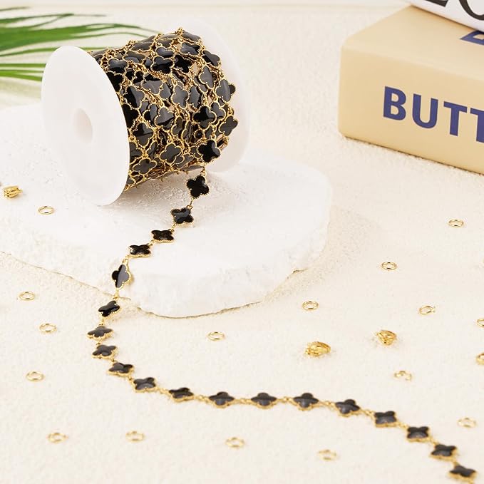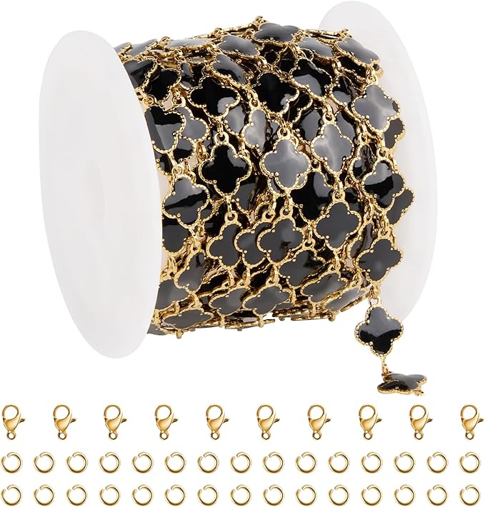 - Package Includes: You will receive 9.8 feet (3m) 8mm width unfinished four leaf clover Enamel gold chain spool non tarnish, 10pcs lobster clasps and 30pcs jump rings, they can meet your various diy craft needs.