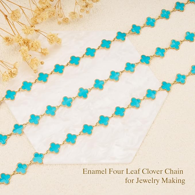- Package Includes: You will receive 9.8 feet (3m) 8mm width unfinished four leaf clover Enamel gold chain spool non tarnish, 10pcs lobster clasps and 30pcs jump rings, they can meet your various diy craft needs.