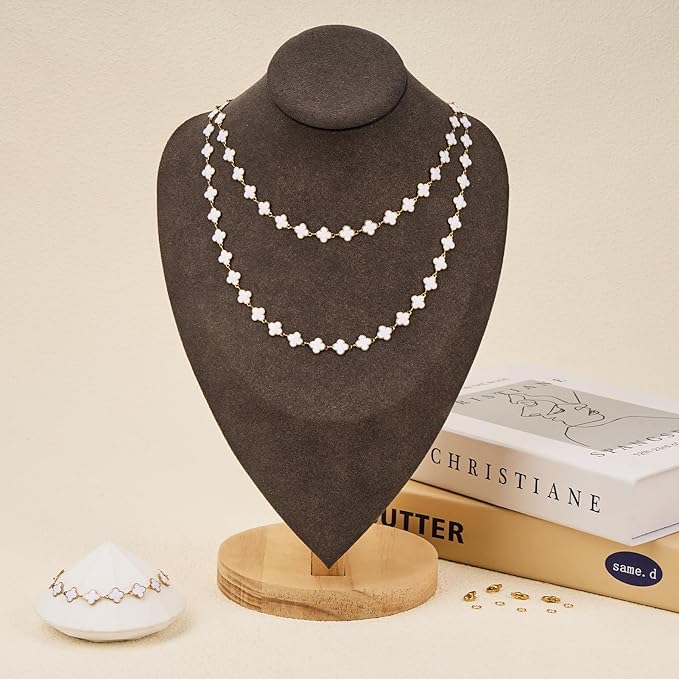 GTVOODX Gold Plated White Enamel Clover Link Chain 9.8 Feet Stainless Steel Craft Chain Bulk for Women DIY Jewelry Making with Lobster Clasps Jump Rings