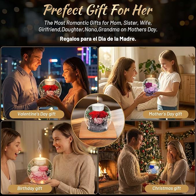 - đăValentines Day Gifts for HerăGreat idea for women gifts. Our preserved real rose in glass gifts set can be used as birthday gifts for girlfriend, regalos para el dia de la madre, wife birthday gifts from husband, birthday gifts for grandma from granddaughter, perfect gifts for mom from daughter and son, grandma birthday gifts, mother day gifts, valentines gifts for her, anniversary gift for her, i love you gifts for her. Or for friends who love to collect candles and other important holidays.